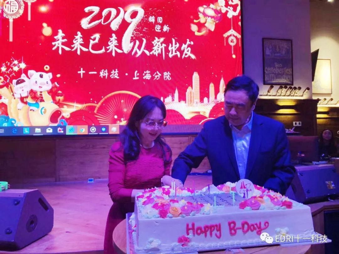 晚會期間正逢趙振元同志的生日,上海分院全體員工共同為趙振元同志送上了深深祝福,一張張珍貴照片記錄了趙振元十八年來帶領十一科技來從弱小走向強大的歷史過程,趙振元同志表示,我把大家的祝福看成是在非常不確定的2019年繼續帶領大家一起前行的期盼,我將與大家共度這充滿挑戰與十分困難的一年。現場氣氛歡樂而溫馨。