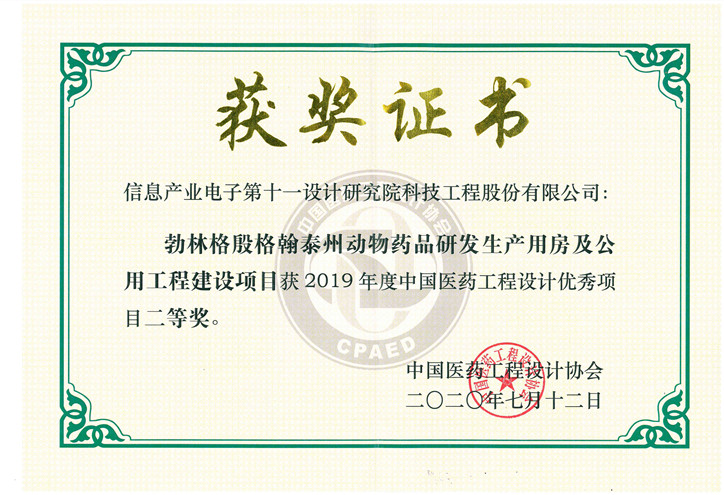• 勃林格殷格翰泰州動物藥品研發全國醫藥二等獎